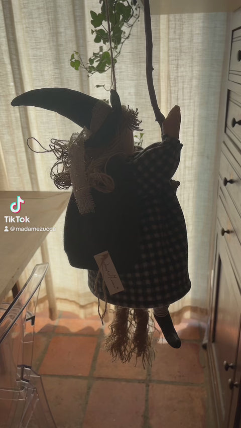 La befana distratta. Stoffe lanate, velluto e particolari dipinti a mano. interamente fatta a mano.
