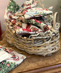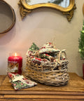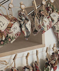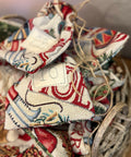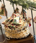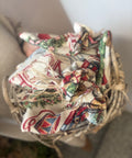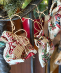 Sacchetti creati con gobelin di Natale e numero ricamato a macchina.